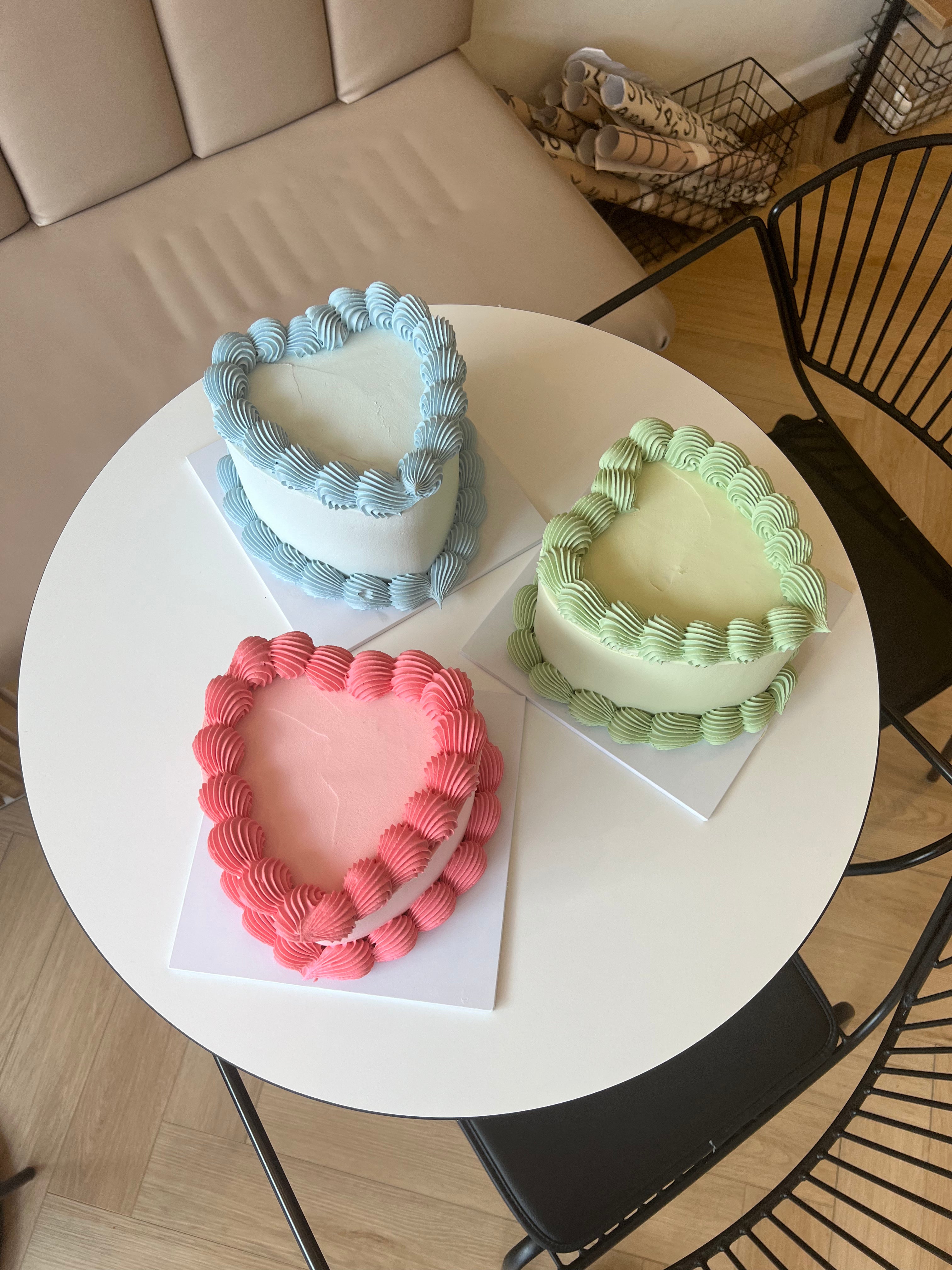 Crafted with smooth buttercream and finished with precise, hand-piped detailing, this heart-shaped cake is clean, refined, and beautifully timeless. Available in a curated palette tones, it’s a sophisticated choice for birthdays, anniversaries, and meaningful celebrations.